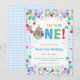 Fun to Be One Birthday Invitation Template, Digital Fun to Be One First Birthday colorful balloons, blue Gingham and confetti with one photo of your choice. Personalize the birthday party invites by adding your child's name, age, and party details.