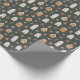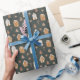 Whimsical Christmas theme wrapping paper featuring illustration of gingerbread houses with blue accent.