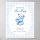 Blue Gingham Bow Heart Teddy Bear Baby Shower Poster