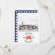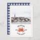 En rustik nautiska bröllop spara datum med en illustration av en röd krabba med anpassningsbar på framsidan. Baksidan är blå och vit gingham.