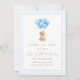 Classic puppy birthday design featuring a watercolor dog with a blue balloon bouquet and soft gingham background. Clean neutral layout with preppy charm—great for a boy birthday celebration or a gender-neutral puppy party theme.