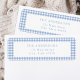 Skapa dina egna returetiketter för anpassningsbar till julkort med personlig minimalistisk typografi på en söt blå gingham plaid mönster-bakgrund.