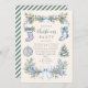 A soft pastel holiday invitation featuring watercolor blue gingham stockings, frosted pine sprigs, and elegant bows. Perfect for a cozy winter gathering or modern Christmas celebration, this design blends cottagecore charm with a fresh, timeless palette of icy blue and soft greenery.