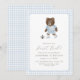 Blue Gingham Teddy Bear Soccer First Kick Inbjudningar