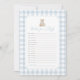 Invite friends and family to fill out their wishes for baby with this elegant blue gingham teddy bear baby shower game card.