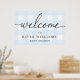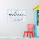 Välkomsttecknet har en tidslassig gingham-design med ett handskrivet skript-teckensnitt. Skriptrubriken är en bild som inte kan redigeras. All annan text är helt redigerbar. Om du vill göra en mer avancerad anpassning av den här designen väljer du bara knappen "Anpassa den" ovan.