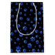Blått glitter hund tass mönster på svart bakgrund. Du måste veta att du får ett foto!