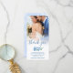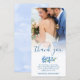 Bröllop tackar dig för att du har ett fotokort med en söt skugga av glöm mig inte. Tack för att du skrev i blått kalligrafi-skript. Anpassa med ditt foto från bröllop och en liten anteckning till dina gäster. Logga med namnen! Baksidan har en blek blå vattenfärgsutskrift.