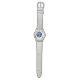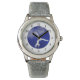 En tjej som kärlek gymnastiksalar kommer att kärlek den här klockan! Den har en silver-silhuetthistoria i ett handställ rörelse i mitten. Ovanför figur är en spray av silver stjärnstoft. Bilder placeras på royalets blå bakgrund. Siffror som placeras på en vit yttercirkel gör det lätt att läsa ur klockan.