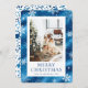 Elegant faux blue foil God jul kort med snöflingor. Anpassa enkelt det här helgdag med foton och text.