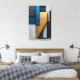 Abstract vertical composition with overlapping geometric panels. Deep blue tones, aged gold, and concrete gray with cracked texture. Modern and sophisticated design ideal for interior decor. Bring industrial elegance and visual depth to your wall with this exclusive art piece.