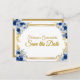 Blue & Gold Floral Save the Date Meddelande Vykort