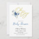 Blue & Gold “Oh Boy” Floral Typography Baby Shower Inbjudningar