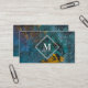 Blue Gold Rust Metallic Texture Monogram Initial Visitkort