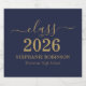 Stilfull elegant anpassad examensfesttillbehör! Fira examenstagets prestation med stil med dessa trendiga etiketter för examensfestöl. Designen har "Klass 2026" i guldskrift på en klassisk blå bakgrund. Anpassa denna produkt genom att lägga till examensår, examenstagets namn och skola. Lätt att anpassa. Grattis!