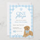 Fira din lilla pojkes första födelsedag med den här "Ett gyllene år"-inbjudan. Den här beundransvärda inbjudan innehåller blå gingham, en guldladdare som bär en blå båge och lekfull tass avtryck. Perfekt för hund-vänliga familjer. Den här fina designen ger en charmerande beröring till vilken födelsedagsfest som helst.