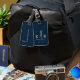 An elegant and stylish tag to identify your golf things... with a monogrammed design for golf players, to personalize with his name and initials on a deep blue background... with template to add a slogan or name of the Golf Club.