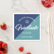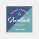 Be proud, rejoice and showcase this milestone of your favorite grad! Celebrate with these simple, modern yet retro, minimal custom paper napkins. Bold, graphic, white handwritten script calligraphy, sans serif typography and a white hand drawn grad cap icon overlay both a dusty turquoise and navy blue background. Personalize the custom text with your grad’s name and address. Personalize the custom text with your graduate’s name, class year and school or special message. Available in various sizes. Matching invites, thank you cards, hand fans, banners, yard signs and other graduation goodies are also available in this retro and trendy collection. Guaranteed to add stylish fun to their special party!