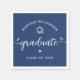 Be proud, rejoice and showcase this milestone of your favorite grad! Celebrate with these simple, modern, bold custom paper napkins. Fun white handwritten calligraphy script with cute, playful hearts and a graduation cap icon overlay a navy blue background. Personalize the custom text with your graduate’s name and class year or special message. Available in various sizes. Matching invites, thank you cards, hand fans, banners, yard signs and other graduation goodies are also available in this trendy and playful collection. Guaranteed to add stylish fun to their special party!