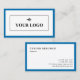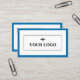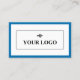 Elegant och minimalistiskt affärskort till vilket du kan lägga till en egen logotyp som täcker merparten av kortet. På andra sidan, i ett blått gräns, lägg till kontaktinformationen.