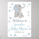 Blue Grått Boy Elephant Baby Shower Välkomstskylt Poster