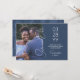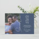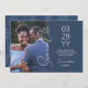 Skivblått bröllop spara datum-kort är mångsidigt för blåaktigt grått bröllop färg. Elegantens kalligrafiskript är vackert överlagt med fotot. Ändra enkelt informationen om bröllop för att spara datumkortet. Blocktext är perfekt för ett enkelt, minimalistiskt utseende.