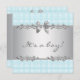 Silver grått med blå och vit, liten, utcheckad bakgrundsklassi pojke duschinbjudan.