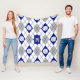 Det här sportiska volleyball-laget färg fleece filte blue, grått och white argyle plaid mönster med ljusa grått "stitching" som sträcker sig diagonalt över diamantformerna och vita volleybollar som ligger över de blå diamantformerna - anpassa med idrottsmannens monogram - av katz_d_zynes