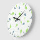 Blue & Grönt Löv Mönster Stor Klocka