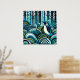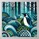 Blue Grönt Lovey Penguin Outdoor Forest Abstrakt Poster
