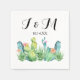 Ett vackert blått och grönt vattenfärgsskinka bröllopsfest anpassningsbar cocktail napkin. Den här boho-designen har räknefel, accti och succulents.