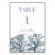 Blue Grund Träd Tropical Boho Bröllop Bordsnummer