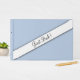 Ljusblått med vitt streck. Lägg till namn i händelse och datum i ryggrad om du vill. Trippelkontrollera all stavning och data.