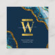 Blue & Guld Agate Geode Glitter Monogram Marble Fyrkantigt Visitkort