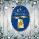 Skicka något söt från den underbara staten Alabama! På framsidan av detta prydnadsämne finns en glansig guld-silhouettebild av staten, med en mörkare guld-stjärna över den. Över läget och stjärnornas bild är glittermeddelandet GOD JUL i skript och en banderoll med texten i blå ALABAMA. Runt om är allt guld snöflingor. Bilder och text placeras på en djup blå bakgrund. På baksidan av dekorationen finns fält i ljusa guld för att du ska kunna anpassa dig och en andra guld-stjärna-bild. Du kan ändra bakgrunden till färg, om du vill, genom att välja CUSTOMIZE.