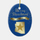Ge är något söt från den underbara delstaten Arizona! På framsidan av detta prydnadsämne finns en glansig guld-silhouettebild av staten, med en mörkare guld-stjärna över den. Över läget och stjärnornas bild är glittermeddelandet GOD JUL i skript och en banderoll med texten i blått ARIZONA. Runt om är allt guld snöflingor. Bilder och text placeras på en djup blå bakgrund. På baksidan av dekorationen finns fält i ljusa guld för att du ska kunna anpassa dig och en andra guld-stjärna-bild. Du kan ändra bakgrunden till färg, om du vill, genom att välja CUSTOMIZE.