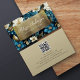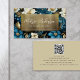 Blue Guld Blommigt Foil QR Code Luxe Visitkort
