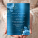Den glamorösa bröllopsinbjudan till blommigt innehåller ljusblå och teal blommigt-buketter som sätts av med guld faux foliage i två hörn. Parets namn visas i klassiskt vitt serif-teckensnitt, med resterande text i kursiv stil, på en tealblå faux-borstad metall-bakgrund.