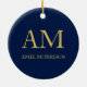 Blue Guld Färg Professionell Initial Brev Namn Julgransprydnad Keramik