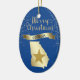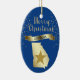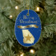 Ge är något söt från den vackra staten Georgien! På framsidan av detta prydnadsämne finns en glansig guld-silhouettebild av staten, med en mörkare guld-stjärna över den. Ovanför läge- och stjärnbild är glittereledningen GOD JUL i skript och en banderoll med texten i blå GEORGIA. Runt om är allt guld snöflingor. Bilder och text placeras på en djup blå bakgrund. På baksidan av dekorationen finns fält i ljusa guld för att du ska kunna anpassa dig och en andra guld-stjärna-bild. Du kan ändra bakgrunden till färg, om du vill, genom att välja CUSTOMIZE.