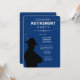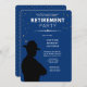 Blått och Guld Pension-inbjudan till en långdistanspatrolman. Konstruktionen har en silhuett av en statstrupp på ett runt kant-kort. Lägg till tjänsteår och annan viktig information till inbjudan.