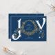 Blått Guld Joy Peace Kärlek Anpassningsbar-julkort. En mycket elegant och en mycket god guld och en röd julklapp som Julhälsningar med guld julfransens andetag och rulla. Denna lyxiga utformning skapas med vintage illustration som är ge för en klassisk beröring. Det fungerar underbart som ett hälsningskort för både företag och familjer. **Anmärkning - guld-folie simuleras med tryckt verkan och EJ faktisk folie