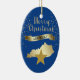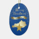 Ge är en söt från Kentucky vackra. På framsidan av detta prydnadsämne finns en glansig guld-silhouettebild av staten, med en mörkare guld-stjärna över den. Ovanför läge- och stjärnbild är glittereledningen GOD JUL i skript och en banderoll med texten i blå KENTUCKY. Runt om är allt guld snöflingor. Bilder och text placeras på en djup blå bakgrund. På baksidan av dekorationen finns fält i ljusa guld för att du ska kunna anpassa dig och en andra guld-stjärna-bild. Du kan ändra bakgrunden till färg, om du vill, genom att välja CUSTOMIZE.