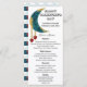 Rubrikerna är åtskilda från textmenyn så att den verkliga menyn lätt kan anpassas. Spela upp med storleka på teckensnittet för att se till att allt passar på kortet. Det här är en imponerande målning av måne. Färg är djupt blå grönt med guld-gnuggar. Två söta röda hjärtjuveler med guld-kedjor hänger på måne.