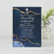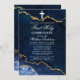 Modern Elegant Watercolor Blue och Guld Marble Agate Geode First Heliga Communion bjudande in