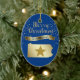 Ge är något söt från den underbara staten Pennsylvania! På framsidan av detta prydnadsämne finns en glansig guld-silhouettebild av staten, med en mörkare guld-stjärna över den. Ovanför läge- och stjärnbild är glittermeddelandet GOD JUL i skript och en banderoll med texten i blå PENNSYLVANIA. Runt om är allt guld snöflingor. Bilder och text placeras på en djup blå bakgrund. På baksidan av dekorationen finns fält i ljusa guld för att du ska kunna anpassa dig och en andra guld-stjärna-bild. Du kan ändra bakgrunden till färg, om du vill, genom att välja CUSTOMIZE.
