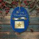 Ge är något söt från Wyomings underbara tillstånd! På framsidan av detta prydnadsämne finns en glansig guld-silhouettebild av staten, med en mörkare guld-stjärna över den. Över läget och stjärnornas bild är glitterelmeddelandet GOD JUL i skript och en banderoll med texten i blå WYOMING. Runt om är allt guld snöflingor. Bilder och text placeras på en djup blå bakgrund. På baksidan av dekorationen finns fält i ljusa guld för att du ska kunna anpassa dig och en andra guld-stjärna-bild. Du kan ändra bakgrunden till färg, om du vill, genom att välja CUSTOMIZE.