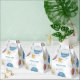Blue Gult Rymden Boy Tack Birthday Favor Box i en roligt och en lekfull spricka av färg pastellblått, guld, scarlet och gult.