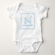 Den här söta och moderna skidans kroppsdräkt i baby har handritade illustrationer i blått, inklusive skidor, poler, en beanie och en söt baby flaska - framtagna av en lekfull doodle gräns på en skarp vit bakgrund. Ett unikt och charmerande val för blivande föräldrar som kärlek på sluttningarna, skidstuga och fira på vintern stil.