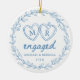 Blue Hand Drawn Engaged Christmas Ceramic Ornament
